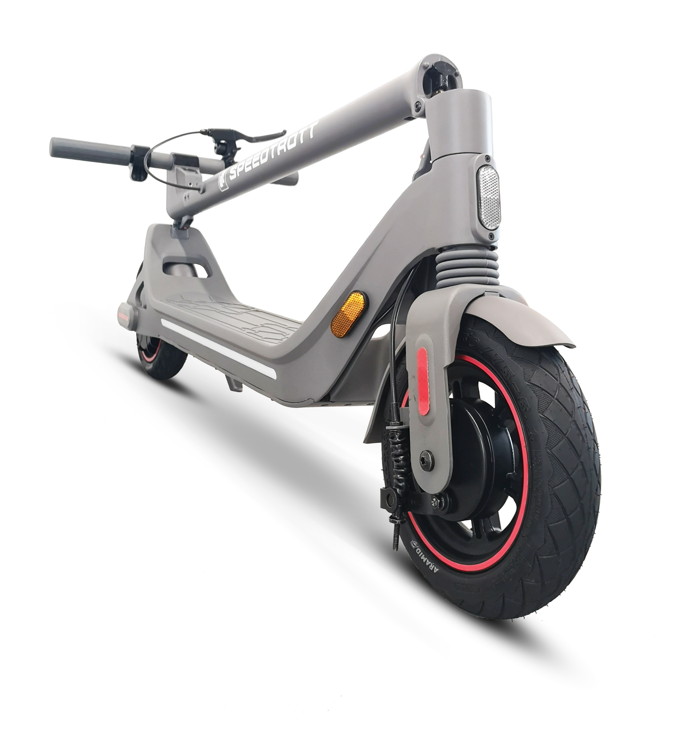 Du point de vue sécurité, nous avons modifié et harmonisé, au sein de toute la nouvelle gamme de trottinettes électriques citadines, le système de pliage (Norme EN17128*). Renforcé, testé et éprouvé, ce système 3 points prévient les risques de pincement et est complété par un système de blocage de manche pour un transport facile.