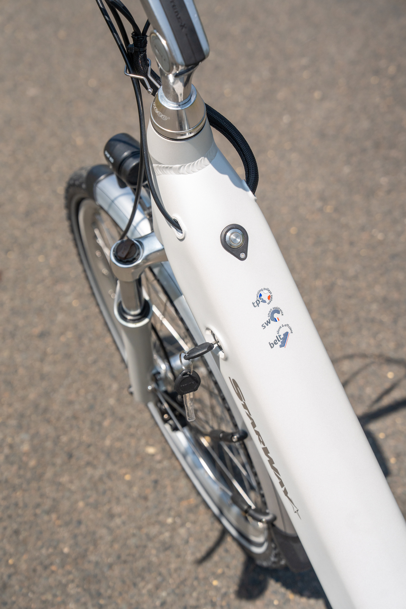 Le Urban II GT est une version plus performante du vélo Urban II. Il offre davantage d’autonomie, de confort et de sécurité grâce à un moteur de 60 N.m, une batterie de 600 Wh, une suspension de selle, et des clignotants intégrés.